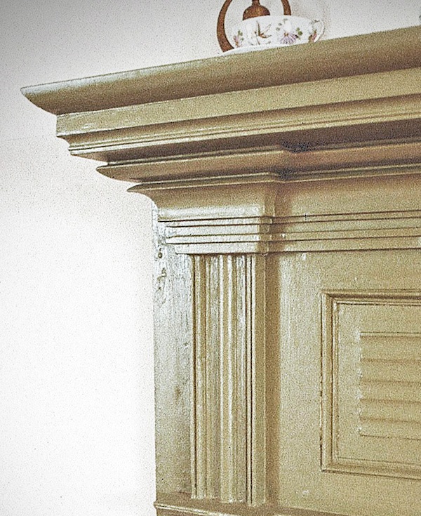 In some rural Greek Revival houses it is not unusual to see an assertive series of sharply projecting quirked ovolos forming a mantel’s bed moldings. A characteristic example of this ambitious treatment is found in Glen Maury, an 1831 plantation house in Buena Vista, Virginia. (Figure 15) Although it’s tempting to assume this is the product of a craftsman’s overzealous imagination, it’s more likely that these moldings were inspired by illustrations of arrises found below the echinus on the typical Greek Doric capital. We see these arrises on a detail of the Doric order published by the New York architect Minard Lafever in The Modern Builder’s Guide (1833), one of many American design books promoting the Grecian style. (Figure 16) In his preface, Lafever acknowledged his source: “Messrs. Stuart and Revett of London; from whose highly valuable and popular work entitled ‘The Antiquities of Athens,’ I have borrowed the article relating to the ancient Orders of Architecture.”[7]
