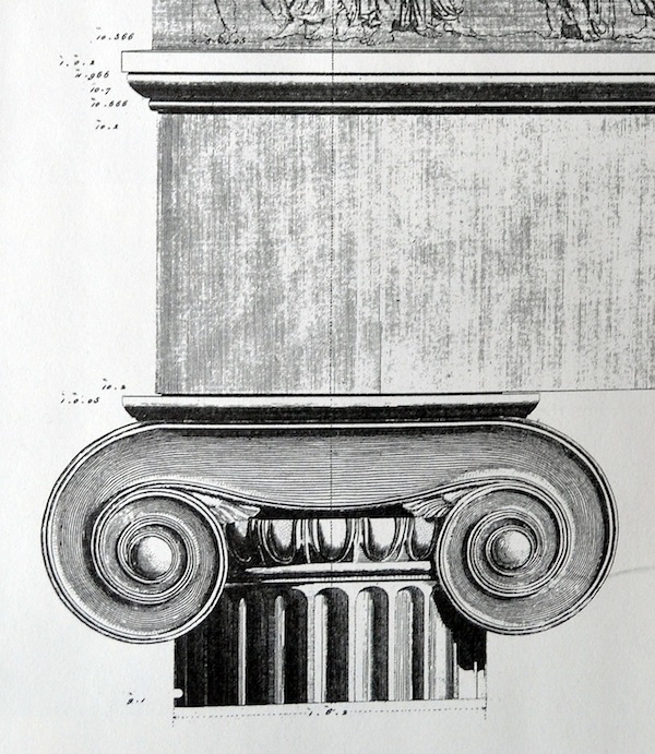 For this Classical Comments piece we will deal with some architectural minutiae—the transition from Roman-style moldings to Greek ones that took place in the late 18th century. Until the publication in 1762 of the first volume of James Stuart and Nicholas Revett’s The Antiquities of Athens virtually all 18th-century molding profiles in both Britain and America adhered strictly to ancient Roman versions as depicted in the Renaissance treatises of Palladio, Vignola, Scamozzi and others. For their sources these architects measured and published the examples close at hand, which were in abundance in the Roman ruins around them. High-style Greek ruins were all but inaccessible for study, Greece having succumbed to unwelcoming Ottoman rule with the fall of Constantinople in 1453.