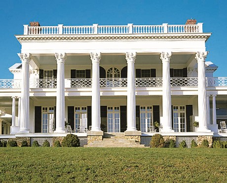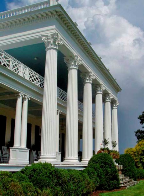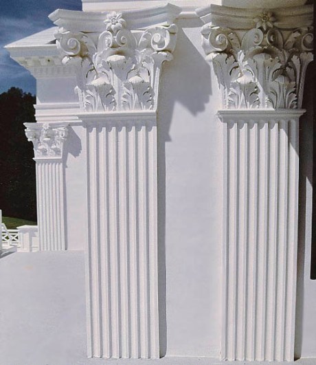 Chadsworth’s Authentic Replication Custom Colossal Columns – Plain, Round, Tapered Columns with Greek Erechtheum Capitals & Ionic (Attic) Base Moldings.