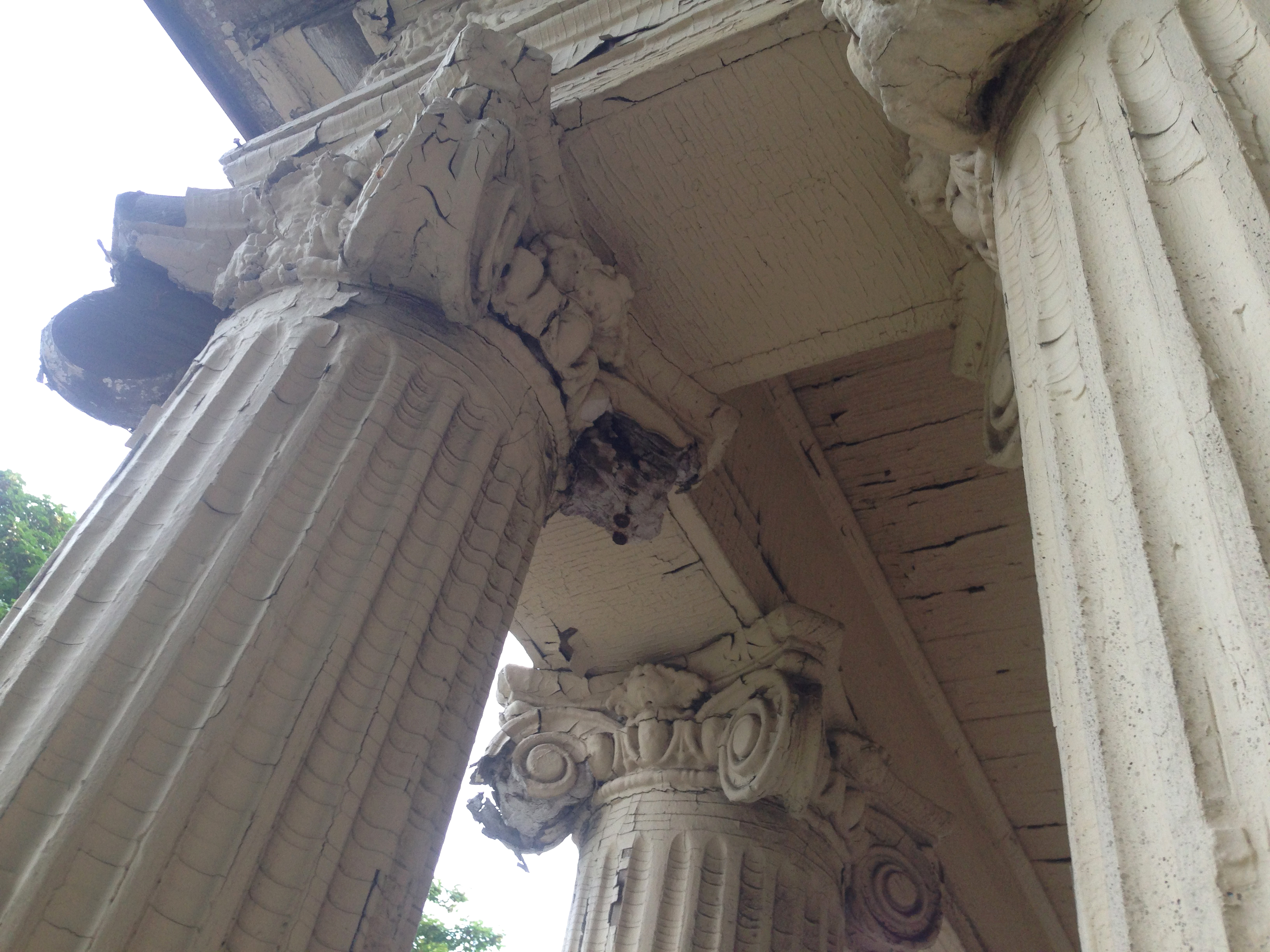 Fluted, Round, Tapered Columns with Roman Corinthian Capitals & Ionic (Attic) Base Moldings & Plinths. 30″ x 19′-05″.